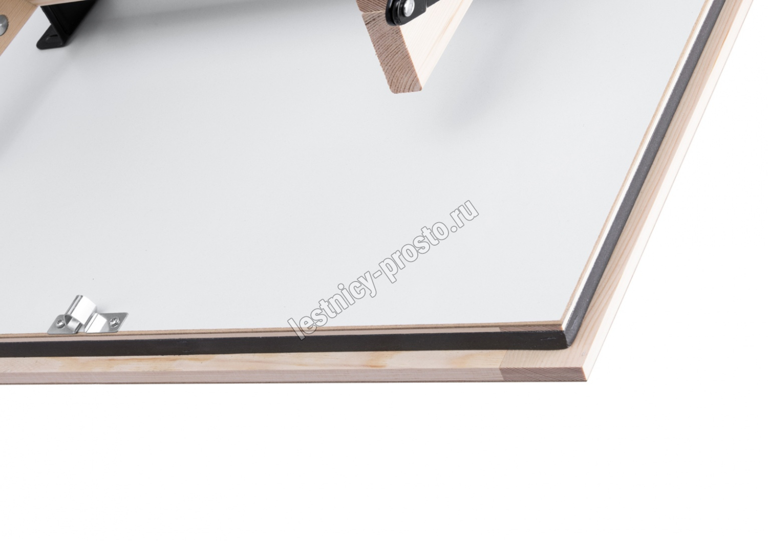 Крышка лестницы MAXI EI45 отличается двойным уплотнением, состоящим из одинарного противопожарного уплотнения и крышки утепленной пенопластом.