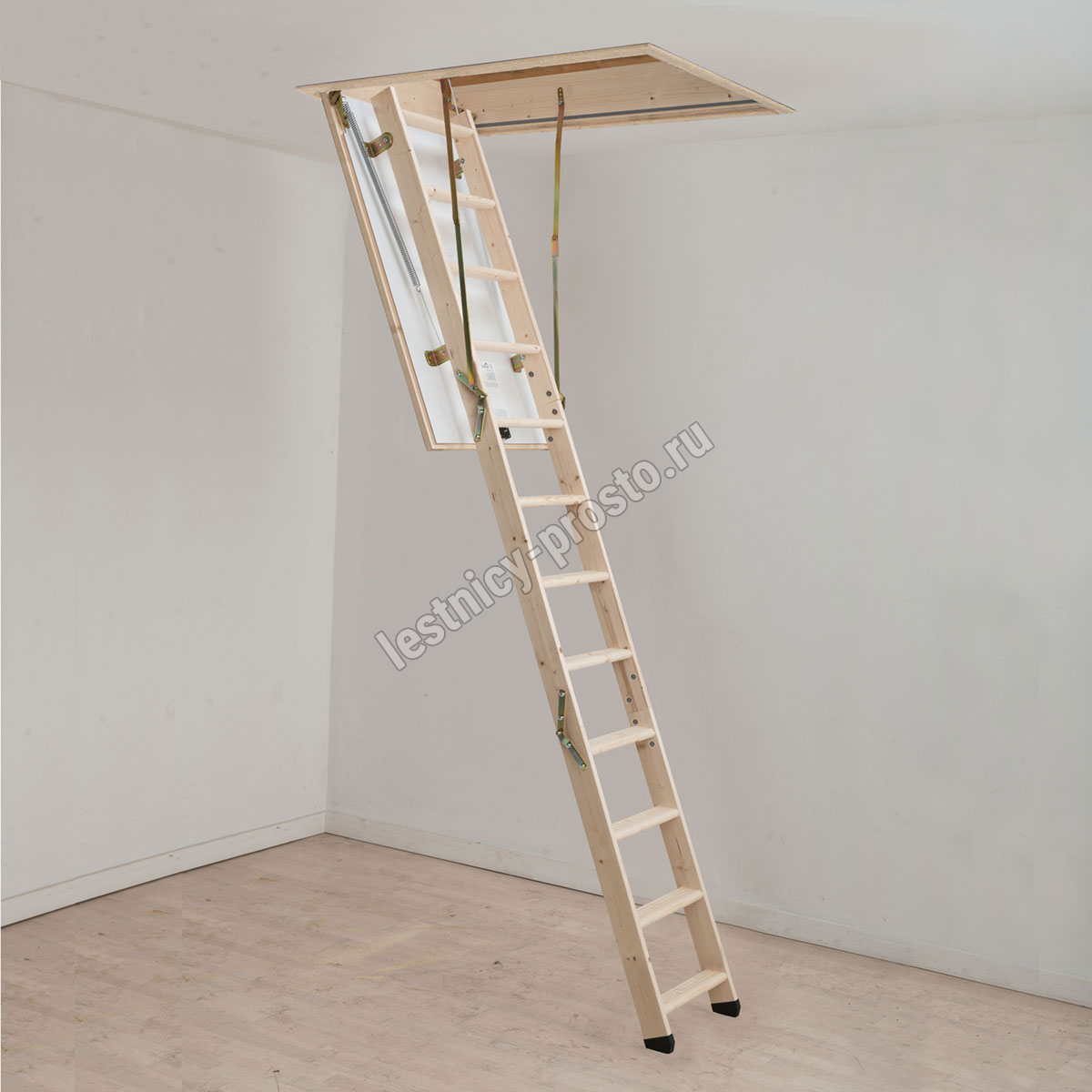 • трехсекционная лестница с сосновыми ступенями,