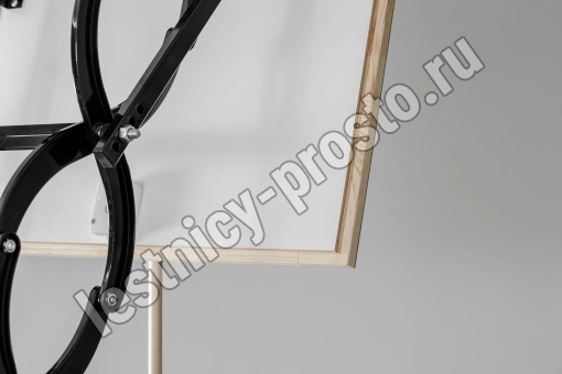 Все элементы лестницы выполнены из экологически чистых материалов и обработаны веществами, не содержащими тяжелых металлов. На ступенях антискользящие насечки. Короб лестницы изготовлен из металла. Термоизоляционная крышка типа "сэндвич" утеплена пенопластом, облицована с двух сторон ДСП белого цвета. Короб люка с уплотнителем. В комплекте деревянный стержень для открывания лестницы.
