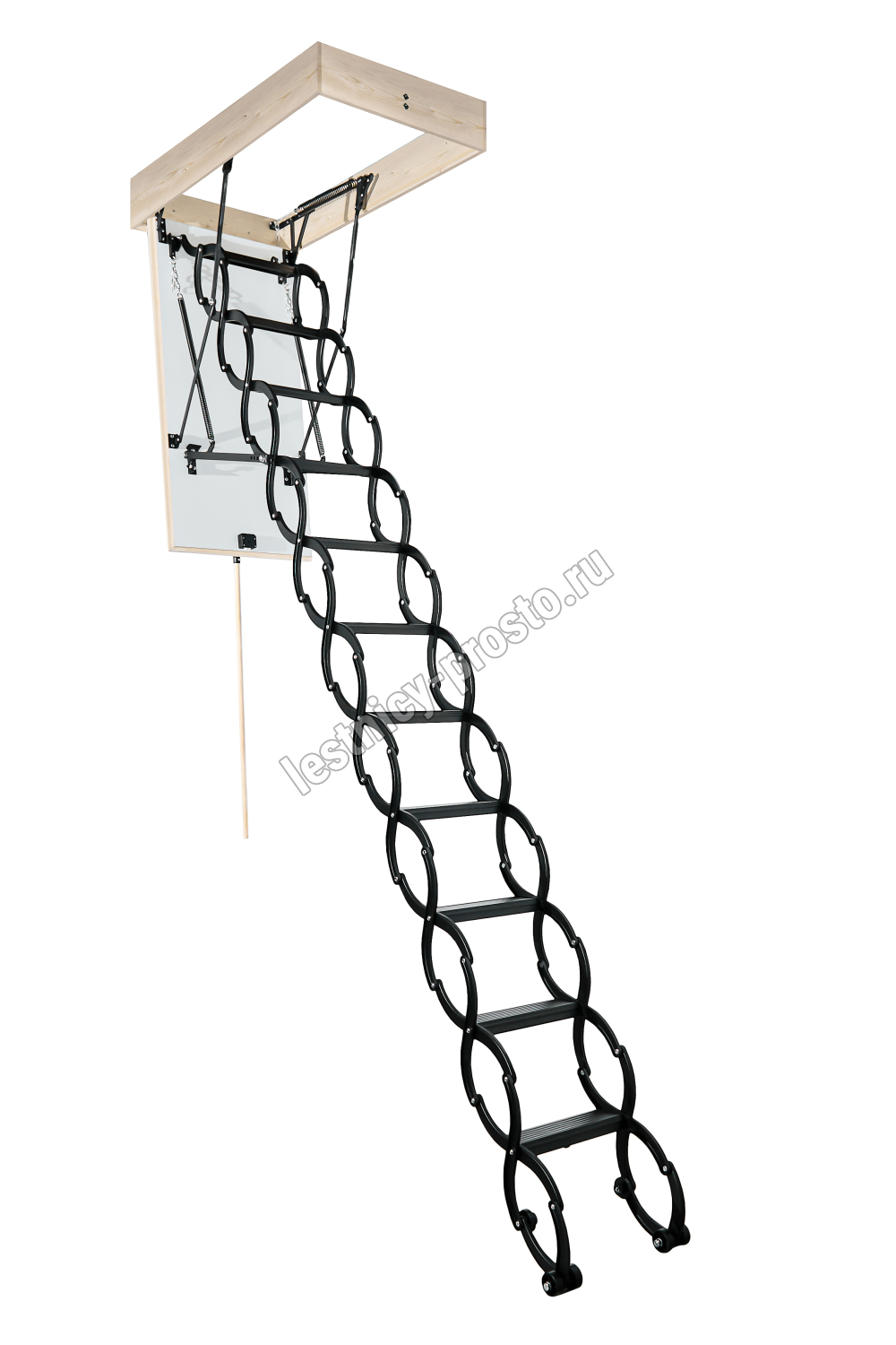 • Материалы: корпус и утепленный люк из древесины хвойных пород с теплоизоляцией из пенопласта; ступени и тетивы из металла для максимальной прочности.