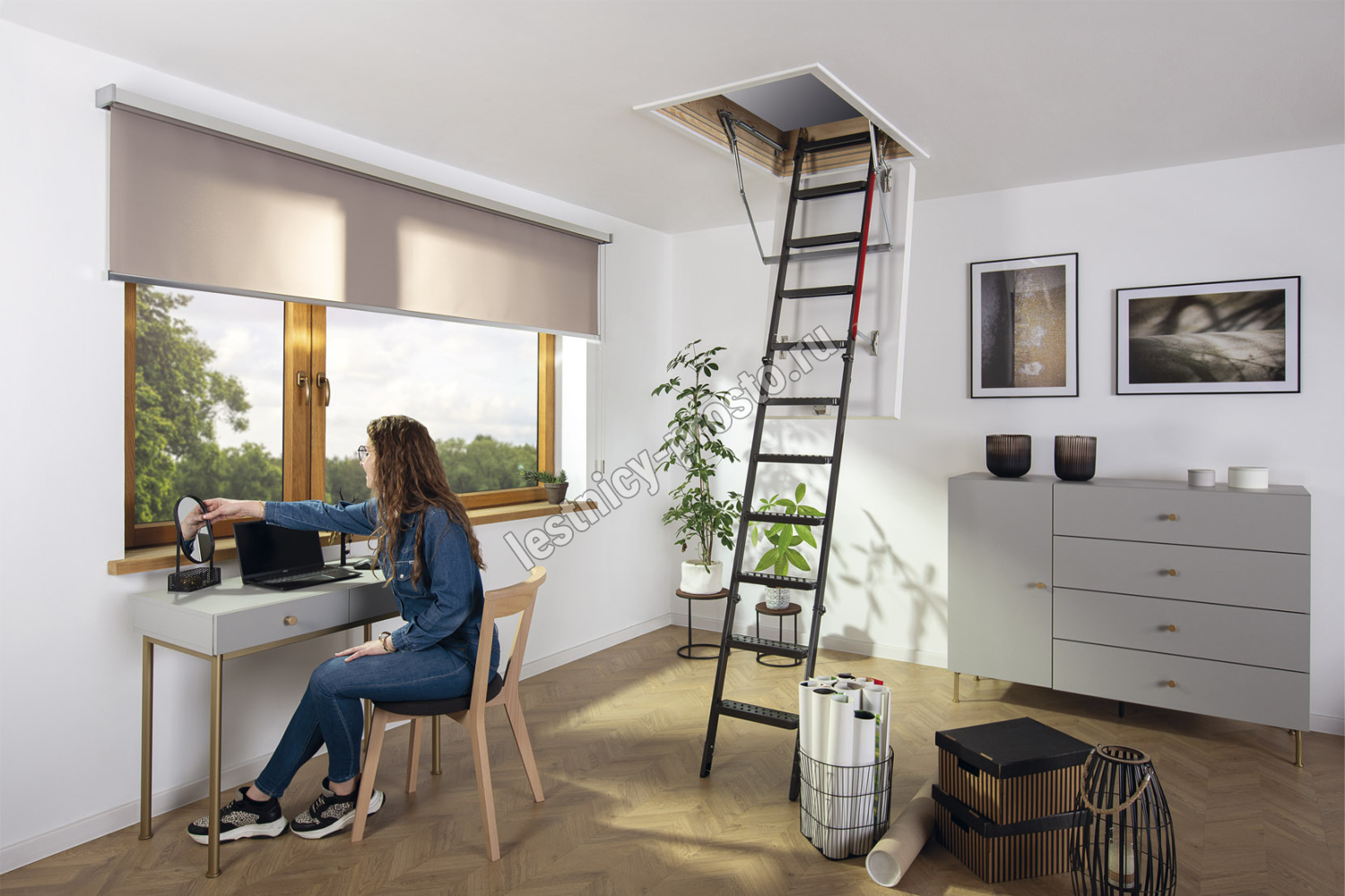 Супертеплоизоляционная металлическая чердачная лестница FAKRO LMT 60×120 см, h-280 см