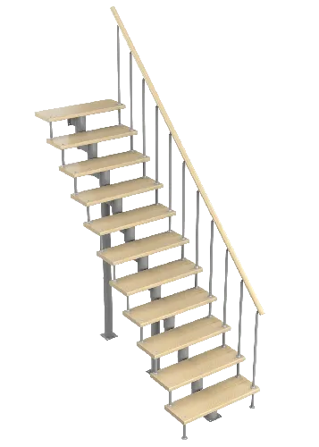 Удобная поворотная лестница на второй этаж. Дополнительные ограждения по первому маршу обеспечивают безопасность при подъеме и спуске, кроме того, небольшой угол подъема открывает всю площадь ступеней. Монтаж осуществляется силами двух человек на объекте по указаниям, приведенным в паспорте на лестницу.