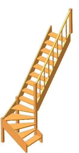 Деревянная межэтажная лестница ЛЕС-07 2880-3085 проем 2550-830, Лиственница