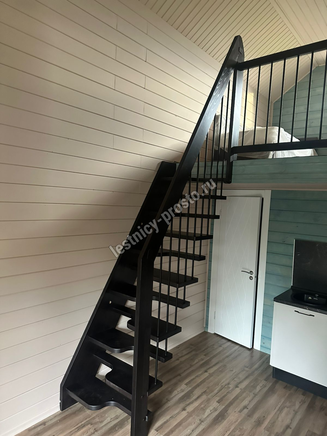Лестница Prosto Studio 720 гусиный шаг имеет компактную конструкцию на подвесах