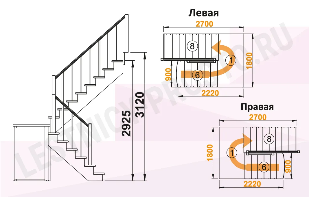 Удобная модель с площадкой и боковым ограждением. Базовая комплектация включает в себя элементы лестницы и ограждения без какого-либо покрытия. Ограждение можно изменить на любое по вашему вкусу (стоимость изменится).
