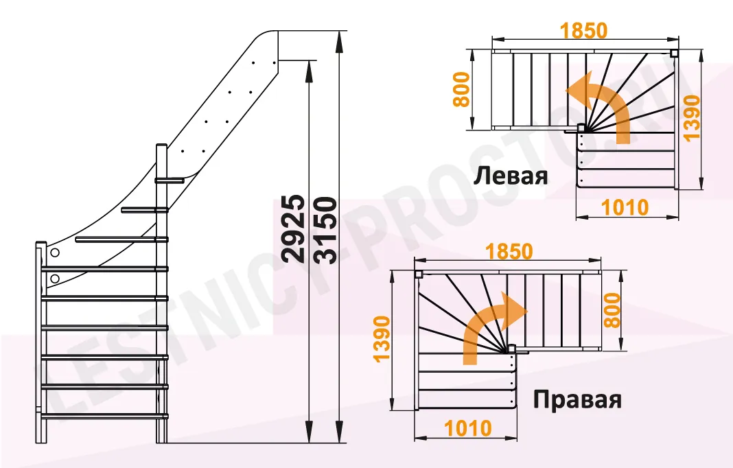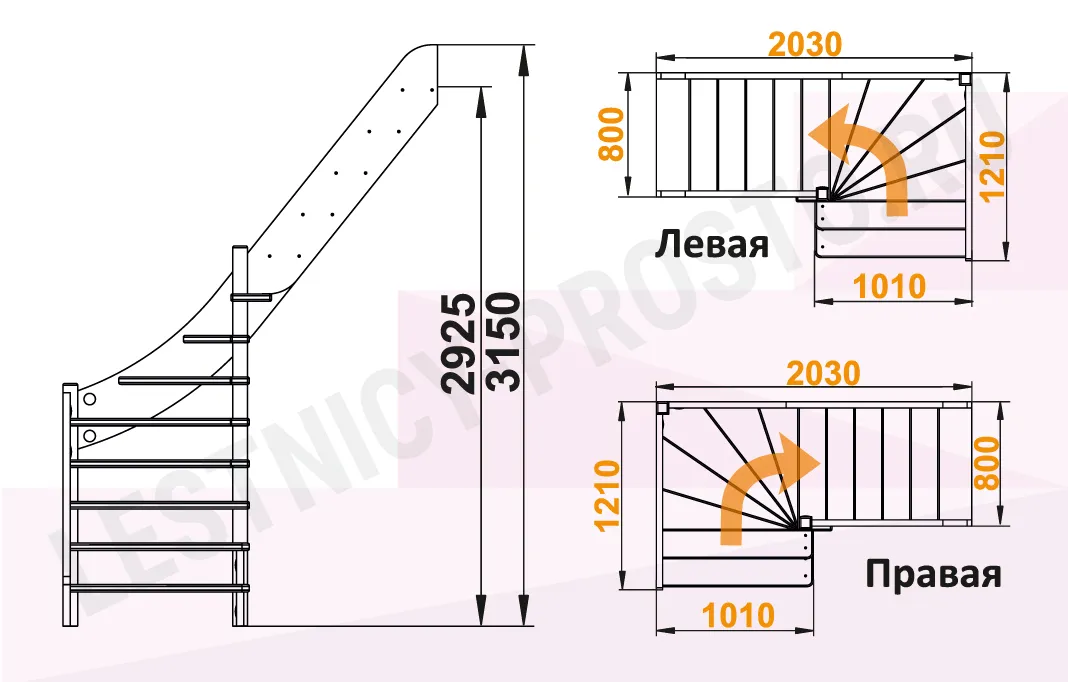 Высота лестницы 2925 - 3150