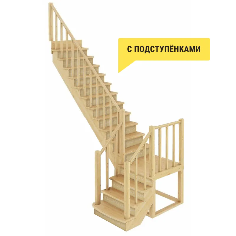 Базовый комплект включает в себя деревянные элементы лестницы и ограждения без какого-либо покрытия.