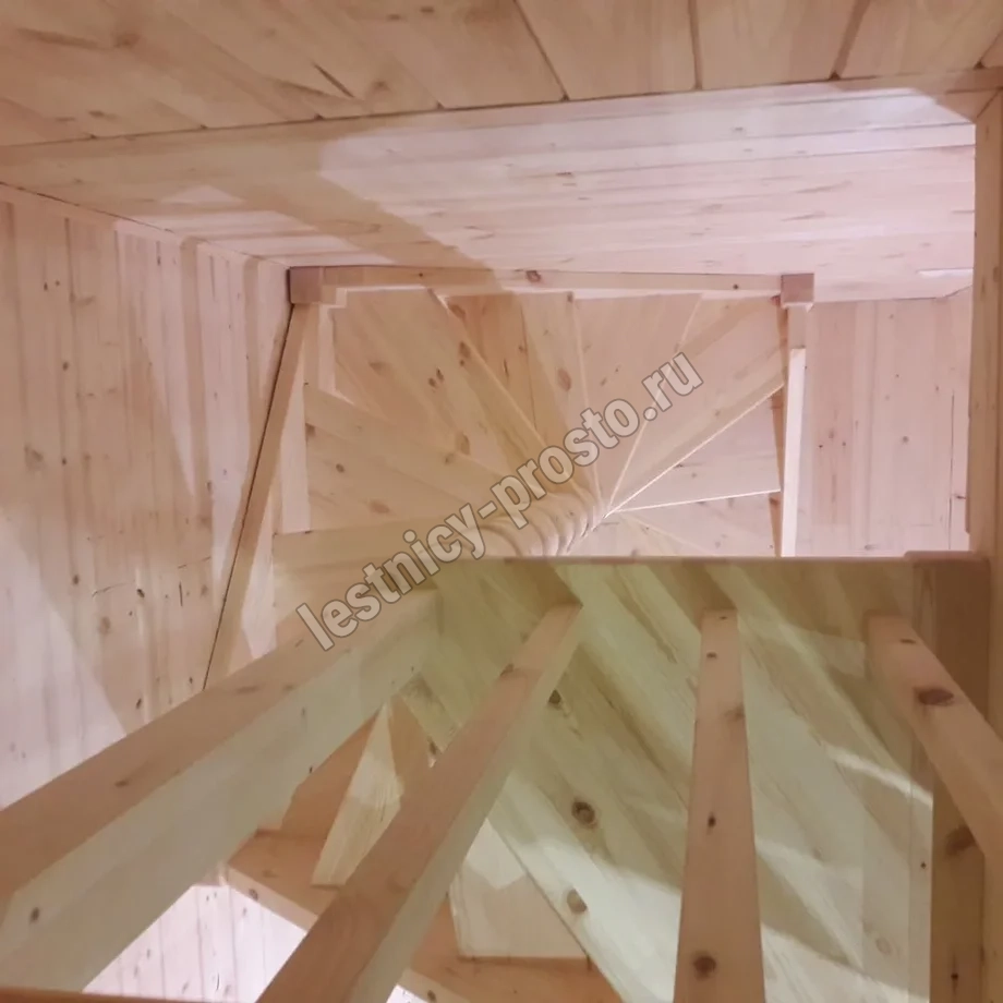 Базовый комплект включает в себя деревянные элементы лестницы и ограждения без какого-либо покрытия.