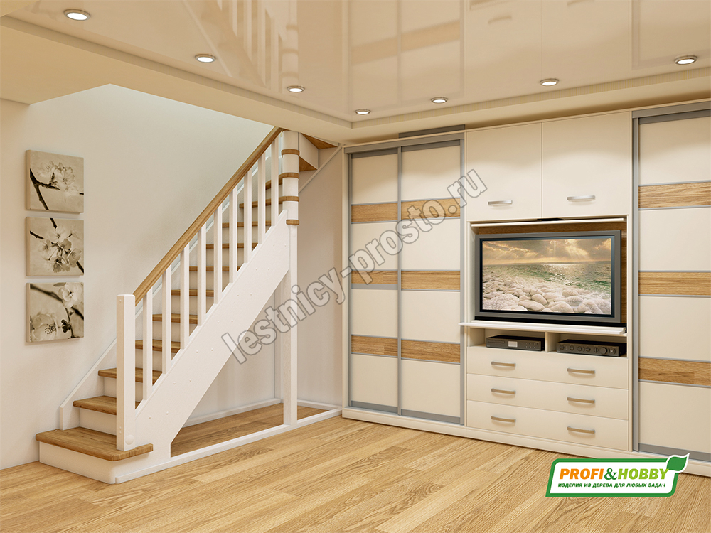 Базовый комплект включает в себя деревянные элементы лестницы и ограждения без какого-либо покрытия.