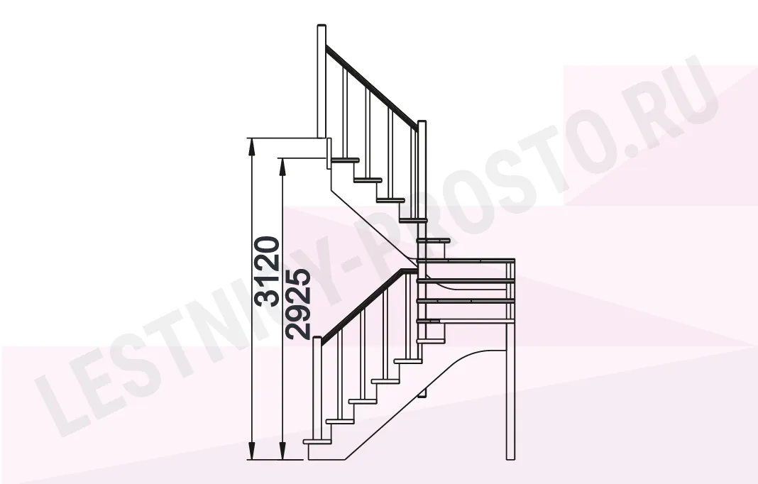 Высота лестницы 2925 - 3120 мм