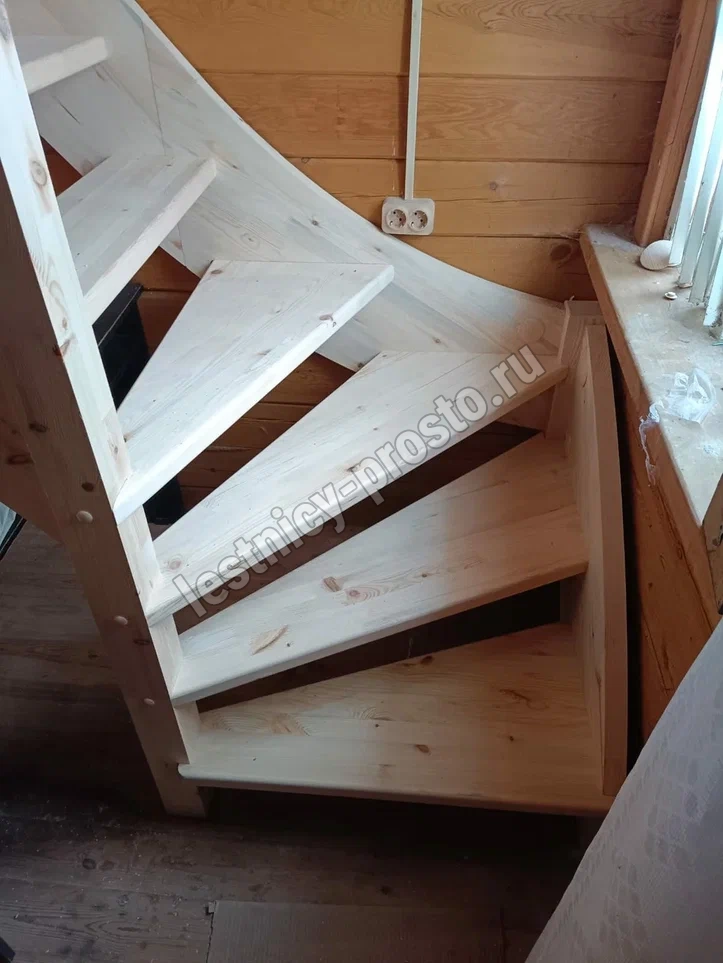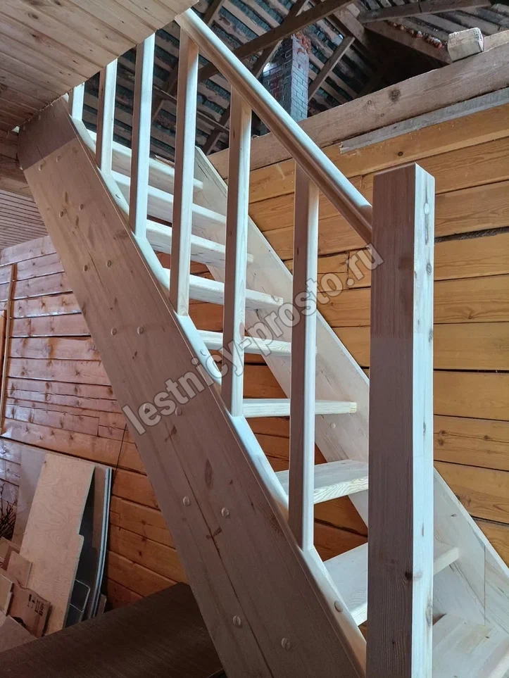 Базовый комплект включает в себя деревянные элементы лестницы и ограждения без какого-либо покрытия.