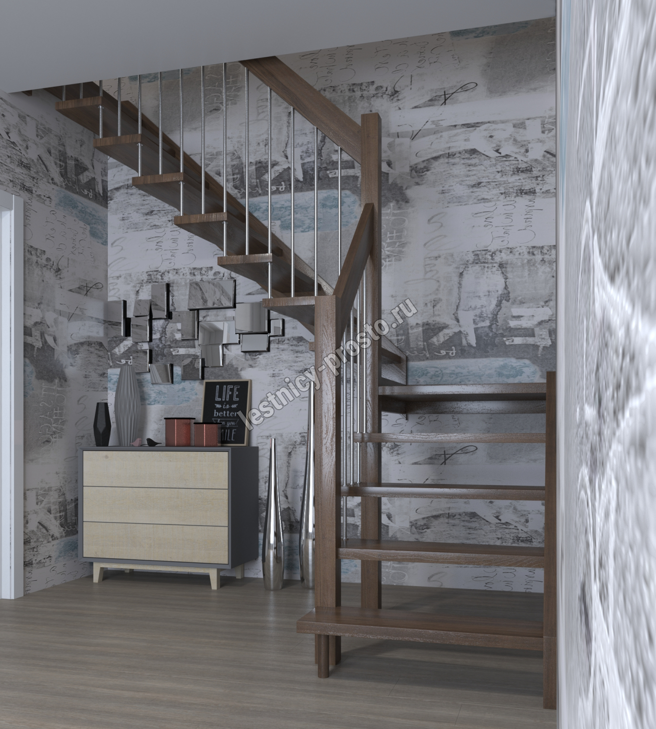 Надёжная современная лестница выполнена по немецкой технологии. Стоимость указана для лестницы с ограждением (с одной стороны); Поставляется в разобранном виде, в комплекте необходимый крепёж; Лестницу можно собрать самостоятельно; Так же, вы можете заказать услугу монтажа нашими специалистами; 4 вида породы дерева для изготовления лестницы: сосна, бук, ясень, дуб; возможна комбинированная лестница: из сосны (ступени бук, ясень, дуб); Деревянные элементы без какого-либо покрытия, отшлифованы, готовы к покраске. За дополнительную плату, вы можете изменить любые параметры, а именно: увеличить глубину ступени; увеличить ширину марша до 900 мм. и выше; заказать подступенки к лестнице; заказать отделку перекрытия (между 1-м и 2-м этажами); изготовить дополнительный промежуточный марш; заказать ограждение 2-го этажа; покраска в любой цвет или несколько цветов или покрытие защитными средствами; дополнение балясины из нержавеющей стали деревянными элементами; покраска балясин из нержавеющей стали порошковой краской в цвет RAL.