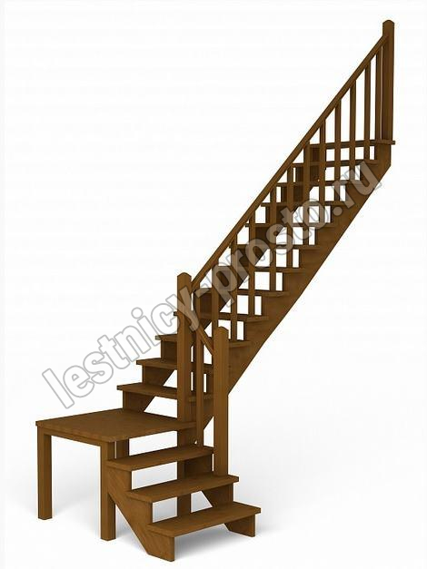Лестница изготавливается под заказ. Возможны варианты подходящие под необходимые размеры проёма. Базовое ограждение можно заменить на кованое или точеное. Лестницу можно дополнить подступенями, бортиками, миниподступенями. Первую ступень можно заменить на пригласительную - лекальную. Классическая модель поворотной лестницы раскрывает всю природную красоту натуральных материалов. У лестницы комфортная высота шага, удобный широкий марш и угол подъема. Указана стоимость лестницы без какого-либо покрытия.