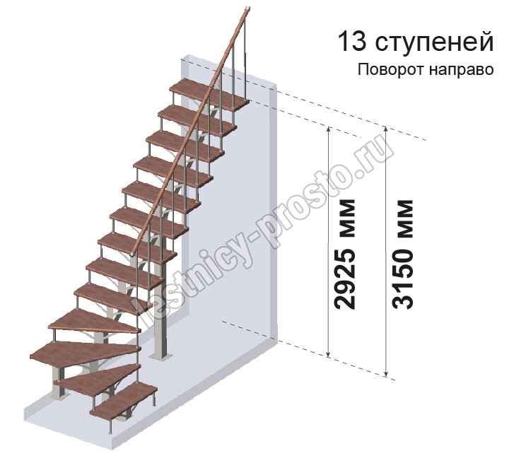 Комплект для Г-образной лестницы MONO h315 из 13 ступеней.
