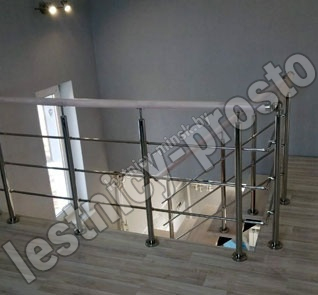 Ограждение для П-образной лестницы PROSTO DUE/DOUBLE с нержавеющими стойками и струнами