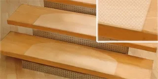 Защитные эластичные накладки на ступени лестницы предотвращают изнашивание, оберегают от случайных механических повреждений и служат безопасности, обеспечивая нескользящую поверхность. Нижняя поверхность накладки прилипает к чистой поверхности ступени лестницы и фиксируется без каких-либо дополнительных склеивающих материалов. Верхняя поверхность рифленая
