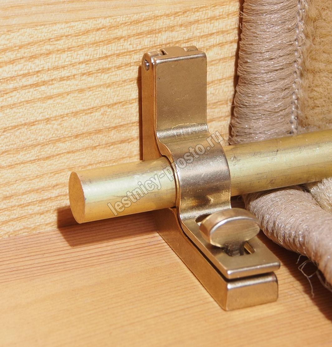 Ковродержатель комплектуется двумя держателями из латуни цвета золото, а также цельным прутком из латуни длиной от 171 до 200 см. Конструкция является сборно-разборной не требующей демонтажа креплений, что делает ее долговечной и очень удобной для чистки ковров и ковровых покрытий.