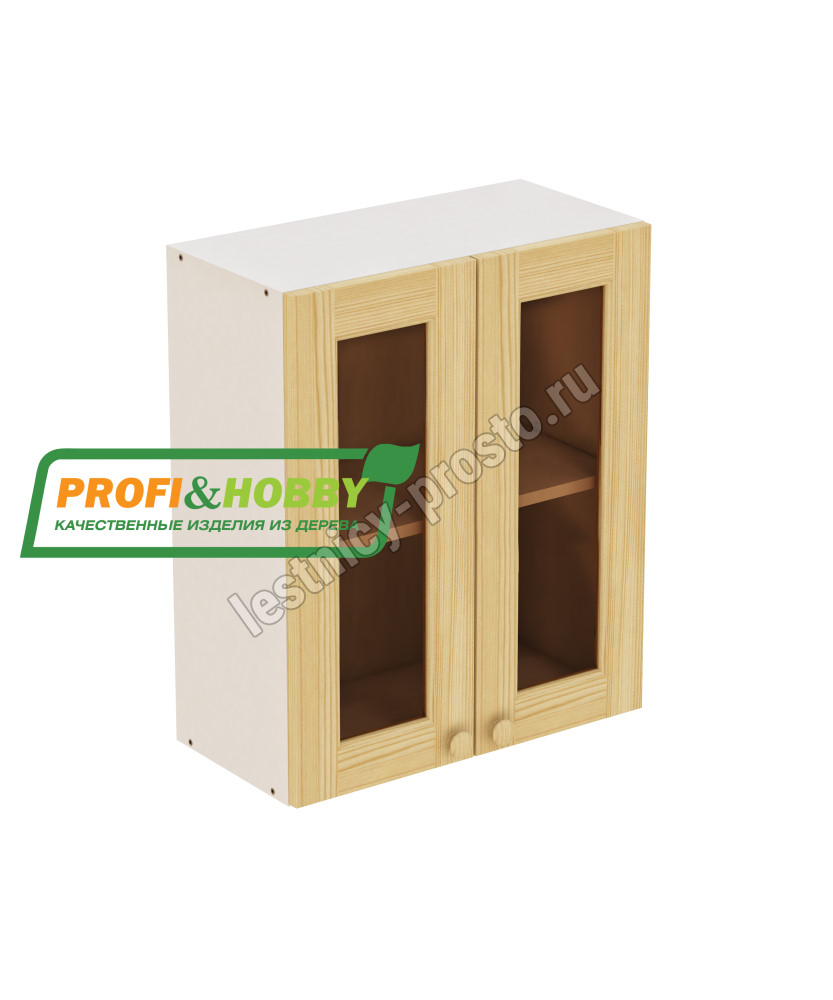 Шкаф навесной 2 двери 600х340х720 + фасад под стекло сосна бесцветный акриловый лак
