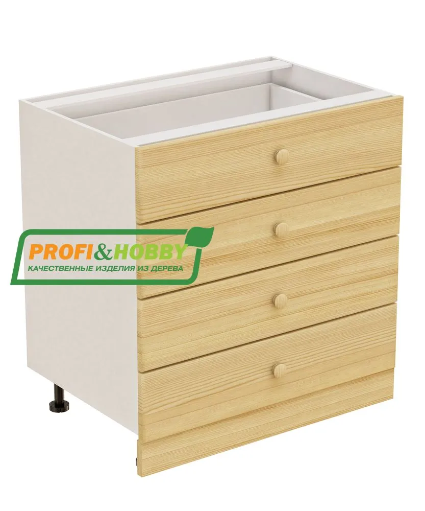 Тумба 4 ящика 800х530х720 + фасад сосна бесцветный акриловый лак