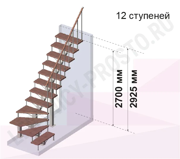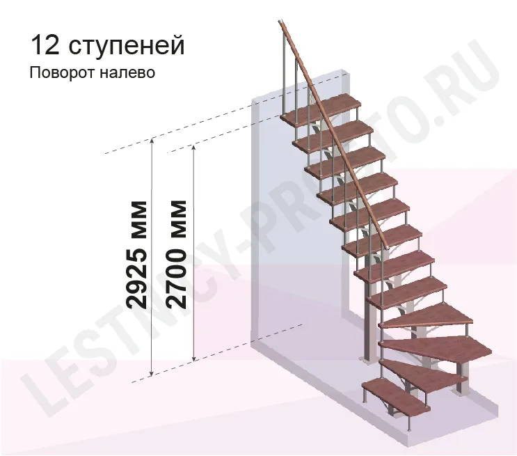 Лестница PROSTO MONO Г-образная h292.5 см, ступени хвоя