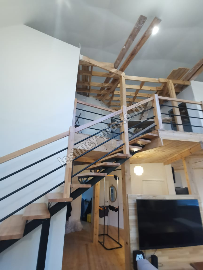 Лестница PROSTO MONO STEP г-образная с площадкой