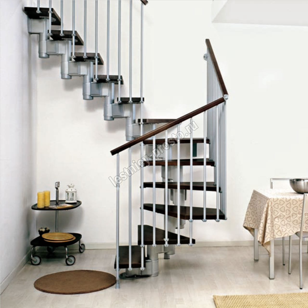 Красивая комфортная лестница с уникальной модульной конструкцией, которая позволяет собрать большое число модификаций, подходящих под ваш проём и другие условия помещения. Возможные варианты сборки лестницы смотрите в блоке "чертежи и схемы". При монтаже модульной лестницы KOMPACT, вы можете варьировать высоту шага и проступь, получив точную необходимую высоту и габариты. Лестница KOMPACT возможна в двух вариантах: с шириной марша 740 мм и 890 мм. Ступени выполнены из массива бука и покрыты качественным износостойким лаком. Базовая комплектация позволяет получить лестницу под высоты этажа в диапазоне 2250 - 3030 мм, кроме того, установив дополнительный комплект увеличения высоты, можно поднять высоту лестницы до 3730 мм. Каркас и стойки ограждения выполнены из пластифицированного металла.
