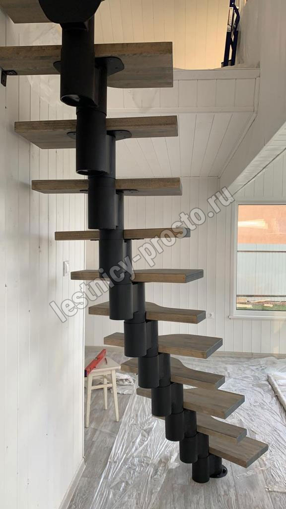 Лестница Prosto Urban Black гусиный шаг 700 мм, h180-264 см (10 ступеней), ясень