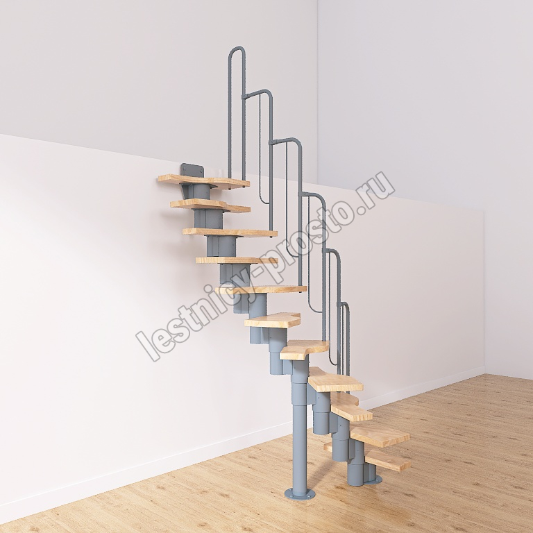 Лестница Prosto Urban Grey г-образная гусиный шаг 600 мм, h198-288 см (11 ступеней)