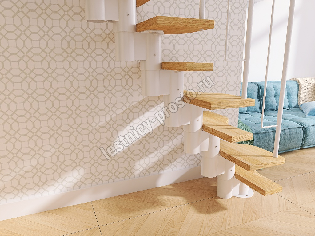 Лестница Prosto Urban White гусиный шаг 600 мм, h216-312 см (12 ступеней), берёза мультиплекс
