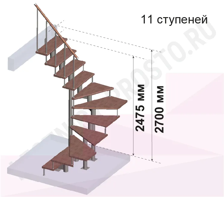 Количество ступеней до поворота - может быть любым , по запросу мы рассчитаем стоимость и сделаем чертеж-схему в соответствии с вашими параметрами. Так же, поворот лестницы может быть реализован через площадку. Звоните и пишите нам по всем возникающим вопросам: мы профессионалы в области лестниц и поможем правильно сориентироваться, не совершив ошибок!