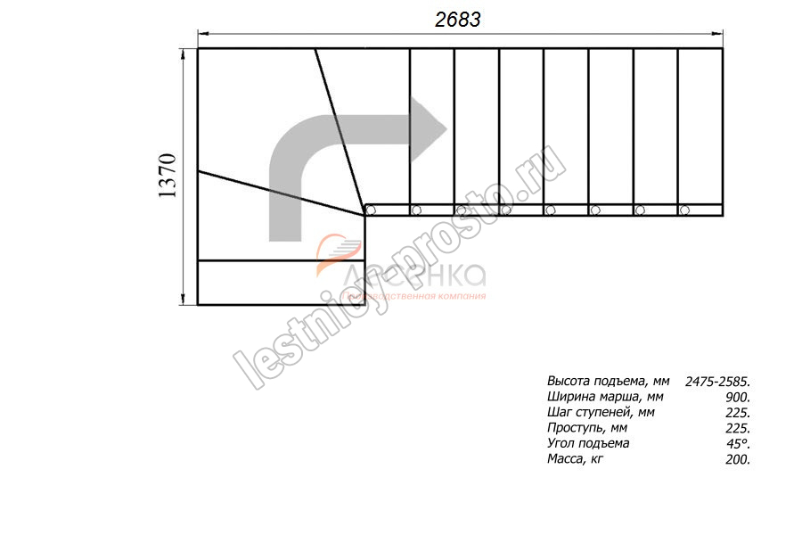 Модульная лестница Фаворит 225 2475-2585, Белый, Сосна, Крашеная, Без Ступений