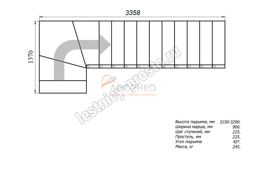 Модульная лестница Фаворит 225 3150-3290, Серый, Бук, Крашеная