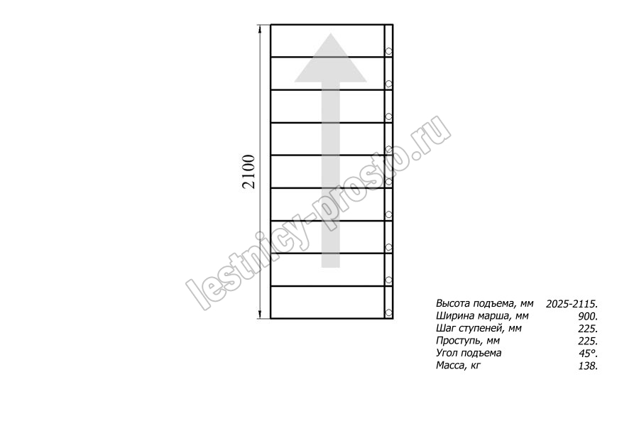 Модульная лестница Стандарт 2025-2115, Черный, Сосна, Нержавеющая сталь