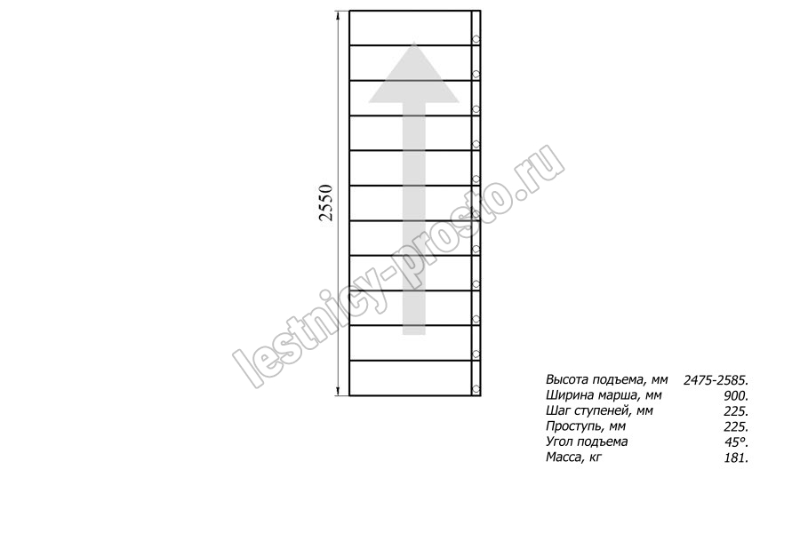 Высота лестницы 2475 - 2585 мм