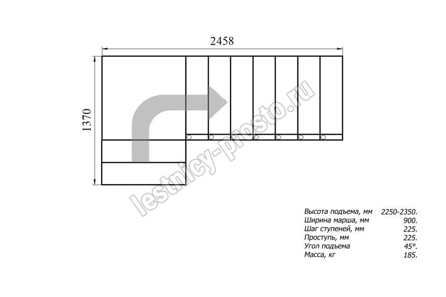 Модульная лестница Статус 225 2250-2350, Черный, Сосна, Нержавеющая сталь