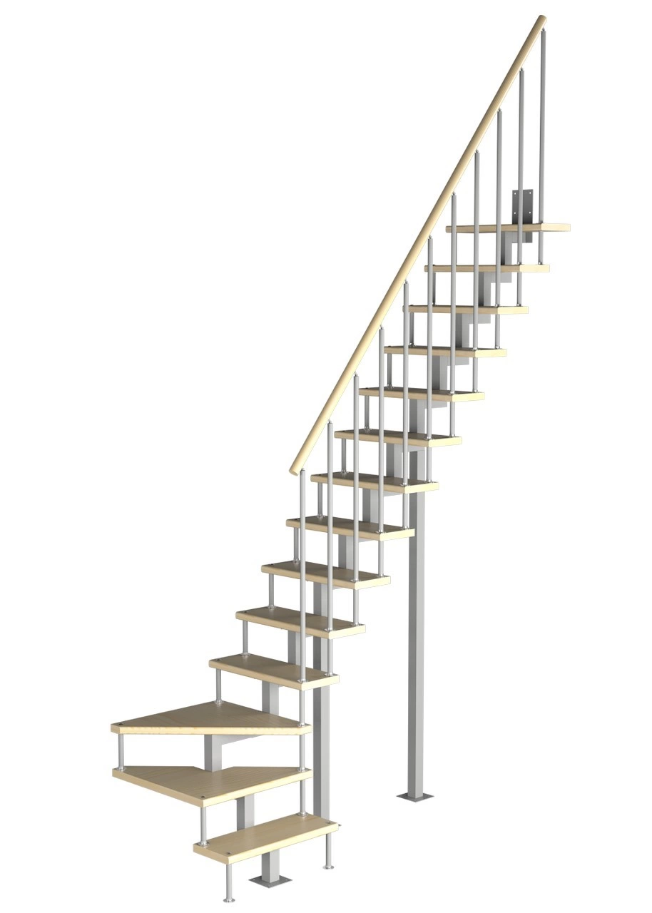 Модульная малогабаритная лестница Компакт 2700-2925, Белый, Бук, Нержавеющая сталь
