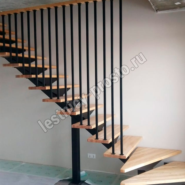 | Лестница PROSTO MONO Г-образная h270 см, ступени лиственница |