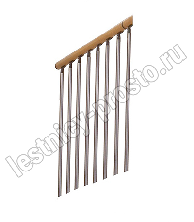 Материалы полностью повторяют материалы ограждения лестницы: поручень выполнен из пвх с текстурой дерева, стойки из хромированной стали.
