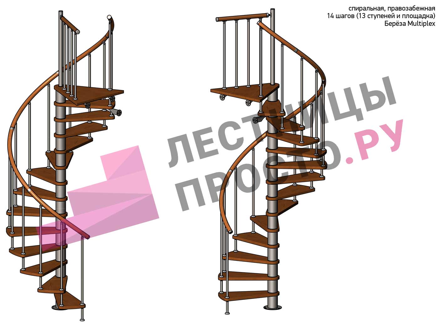 Ширина ступени между центральной колонной и поручнем ≈ 58 см.