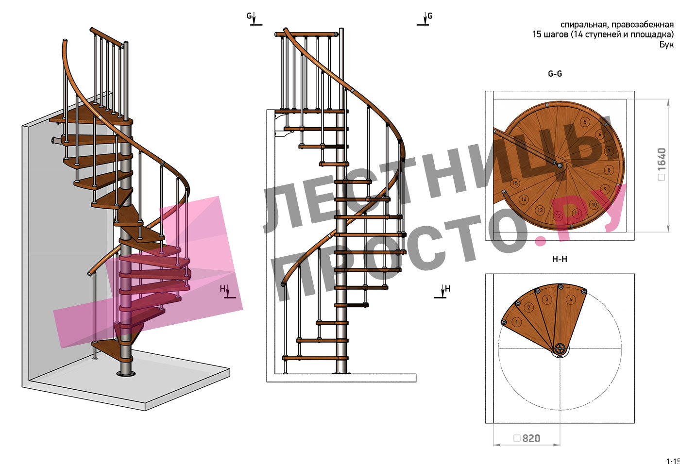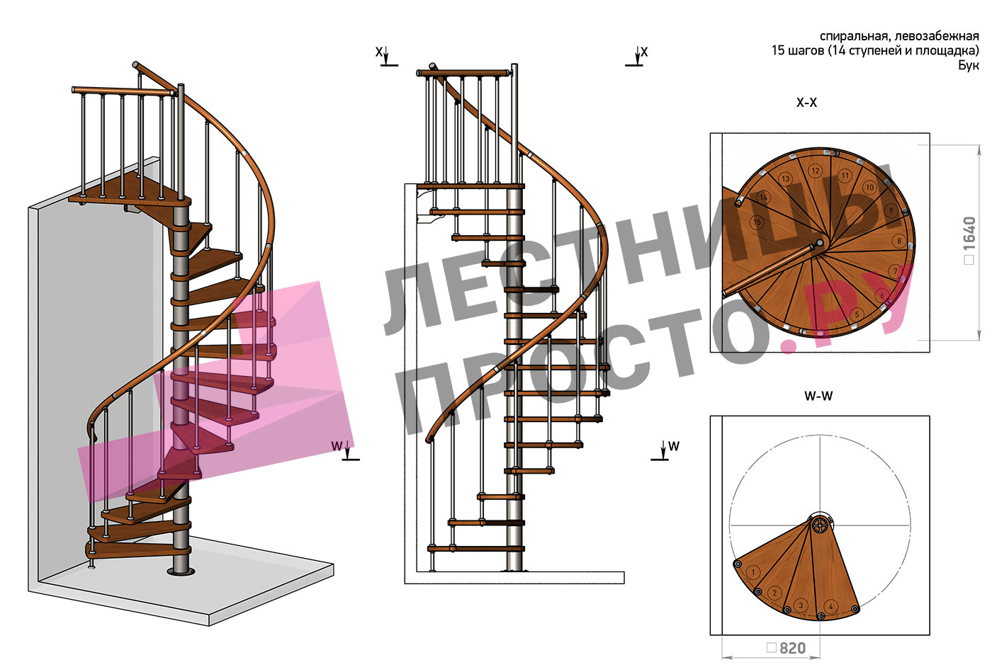 | Винтовая лестница Prosto Spiral White D160см, h282.2-326,3 см, бук |