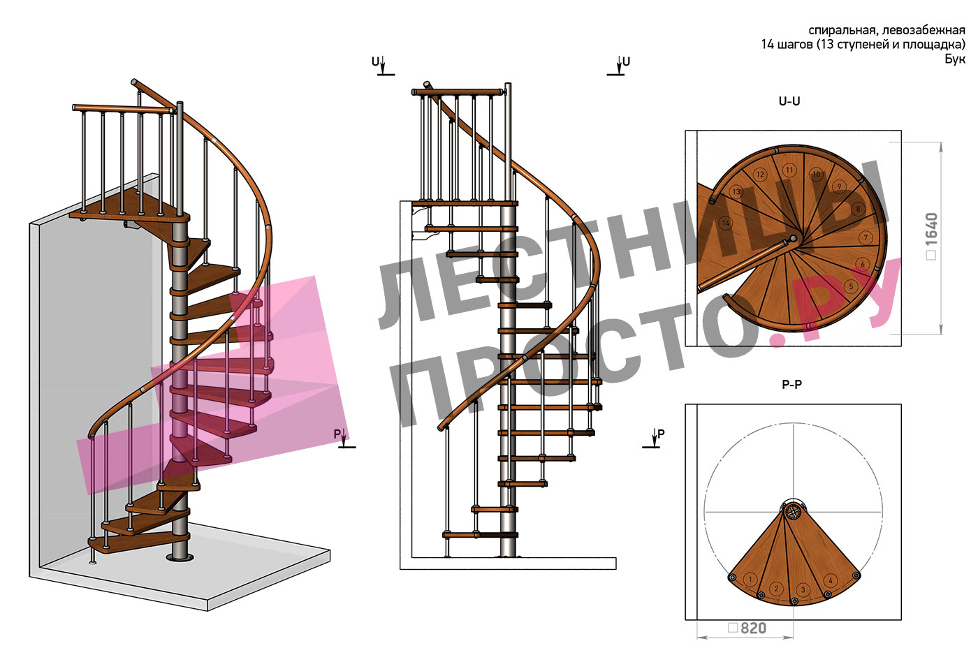 | Винтовая лестница Prosto Spiral White D140см, h282.2-326,3 см, бук |
