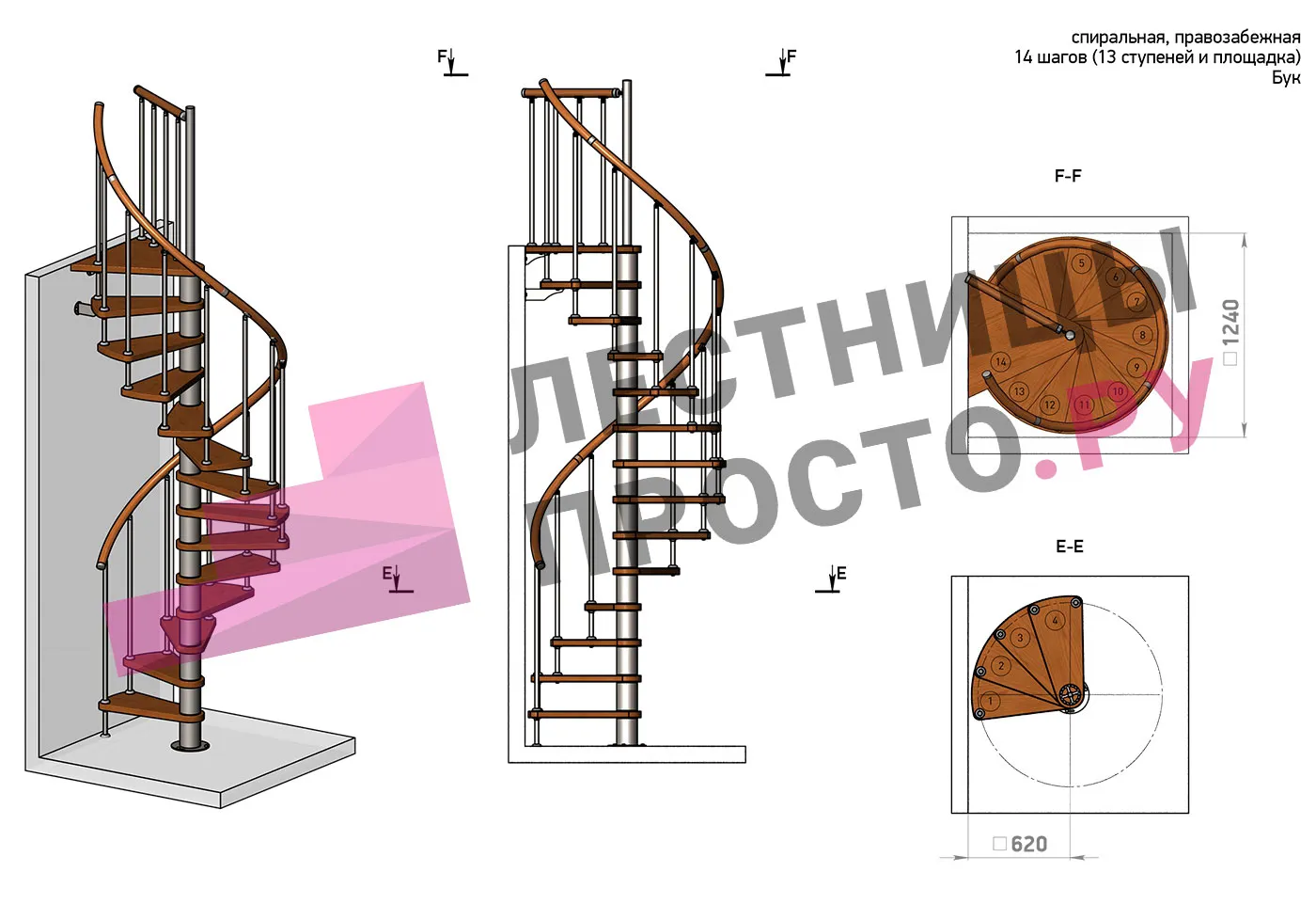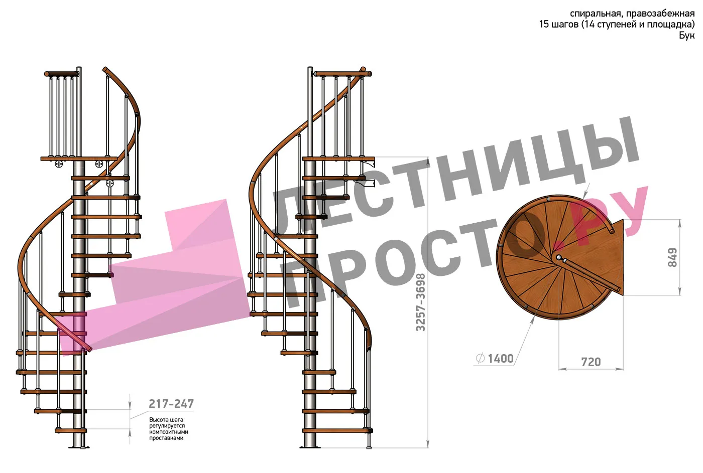| Винтовая лестница Prosto Spiral White D140см, h303.9-348,1 см, бук |