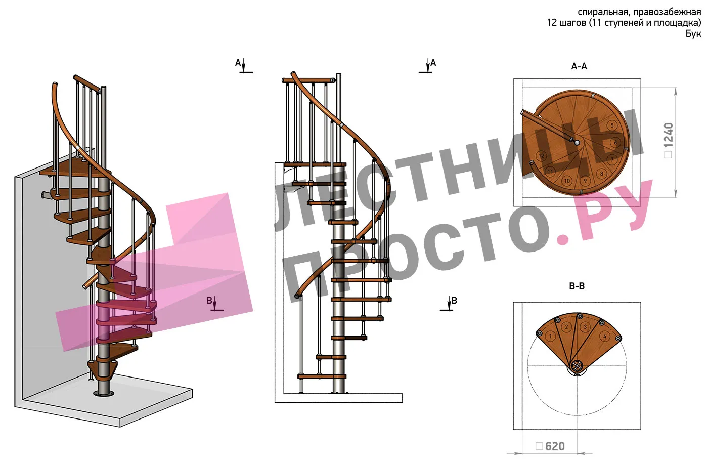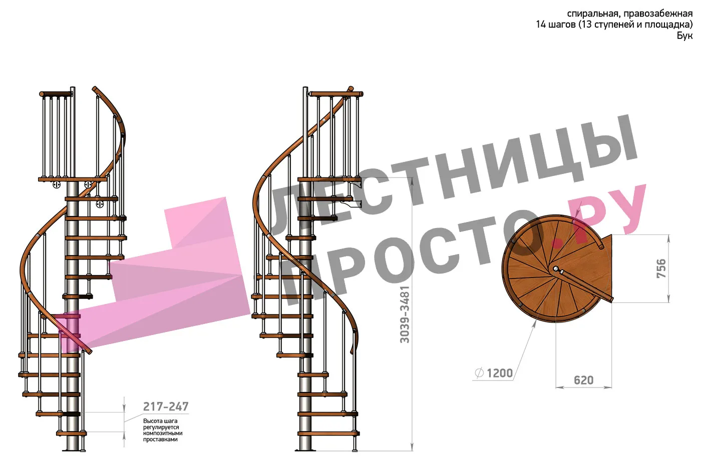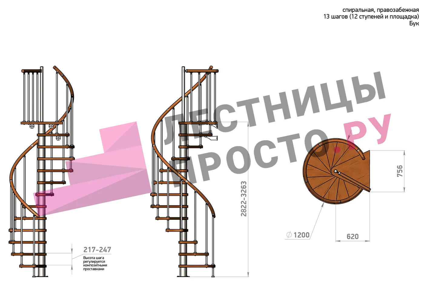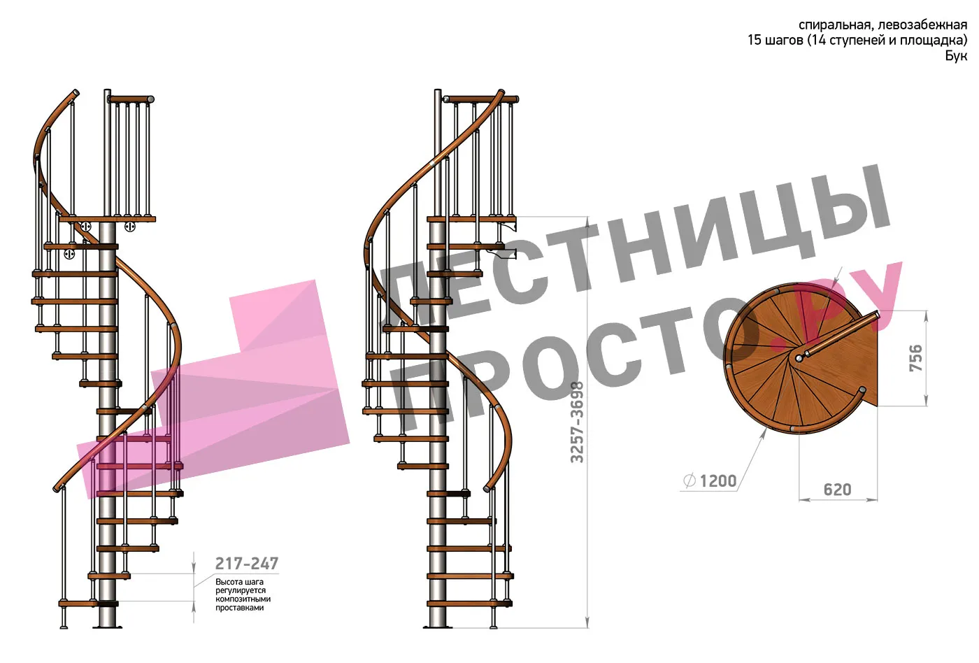 | Винтовая лестница Prosto Spiral White D120см, h325.7-369.8 см, бук |
