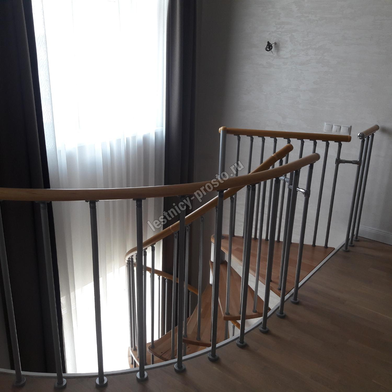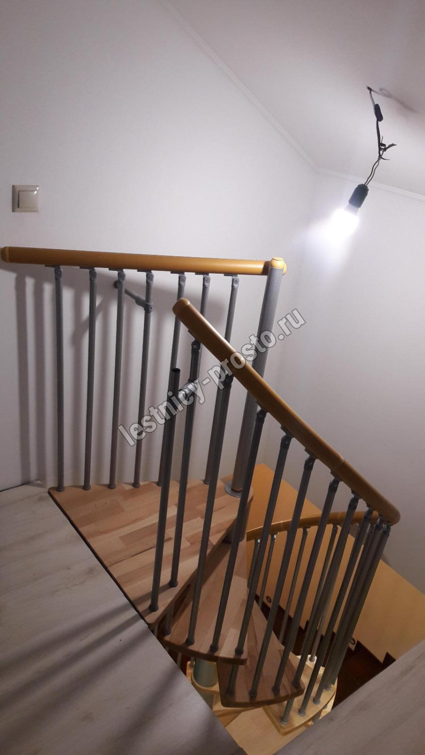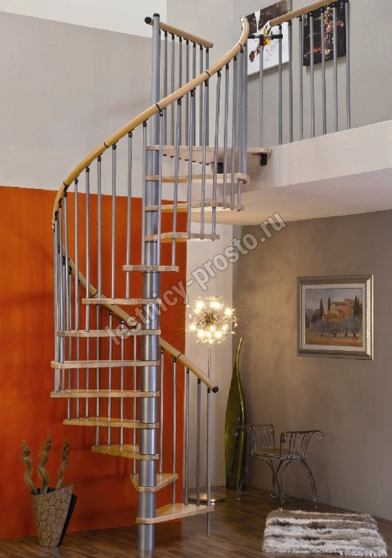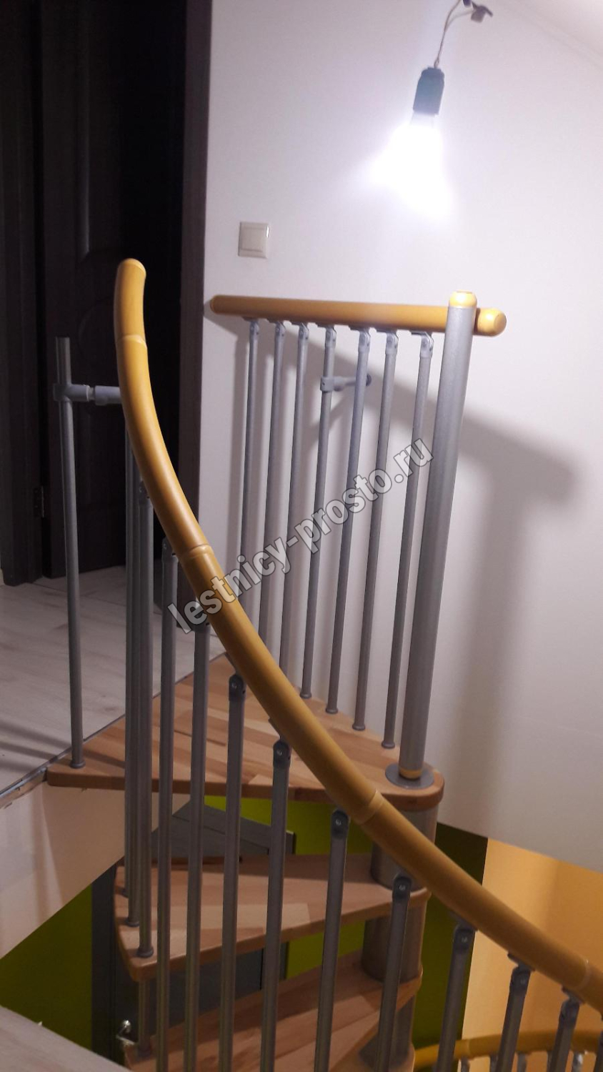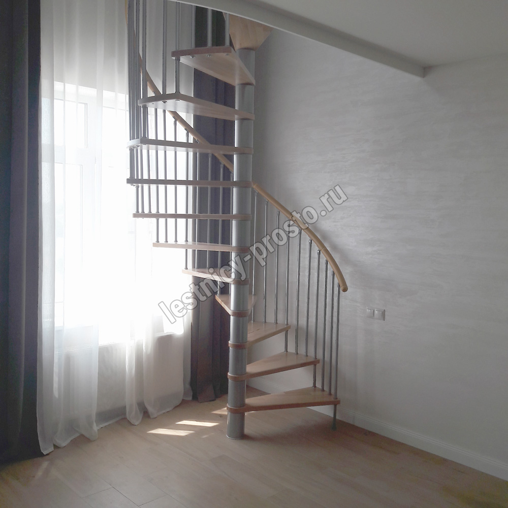 Винтовая лестница SPIRAL WOOD d160 см, серебро, лакированный бук