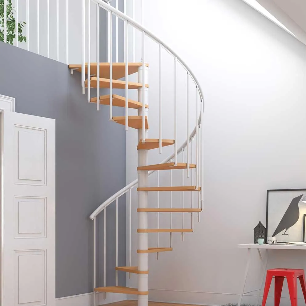 Элегантная и прочная винтовая лестница с современным дизайном. Лестницу можно приспособить к небольшому пространству. Эта модель была разработана специально для людей, которые хотят привнести индивидуальные особенности в свой интерьер с помощью высококачественных материалов и в то же время насладиться скандинавским стилем дизайна. Модель отлично подходит для обустройства мансарды или входа в антресоль. Лестницу можно установить как отдельно стоящую - правую или левую. Ступени лестницы изготовлены из бука по технологии MULTIPLEX, покрыты износостойким защитным лаком.