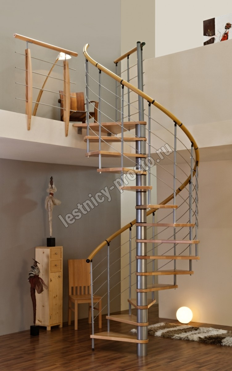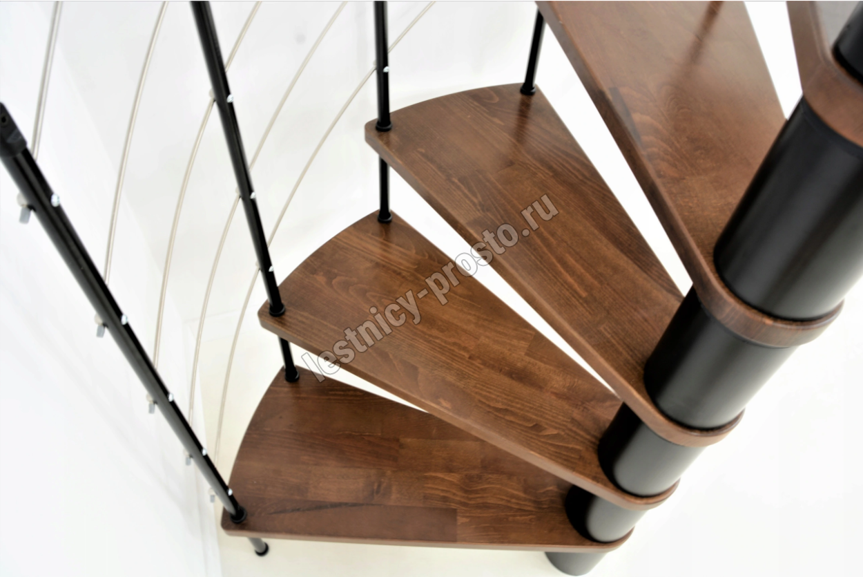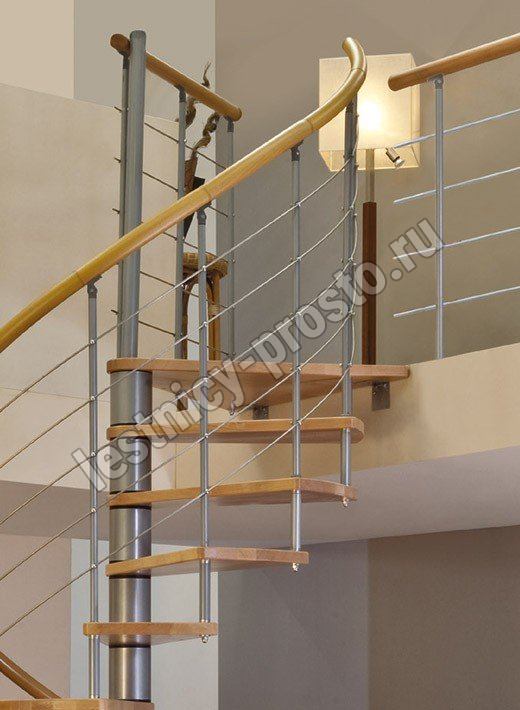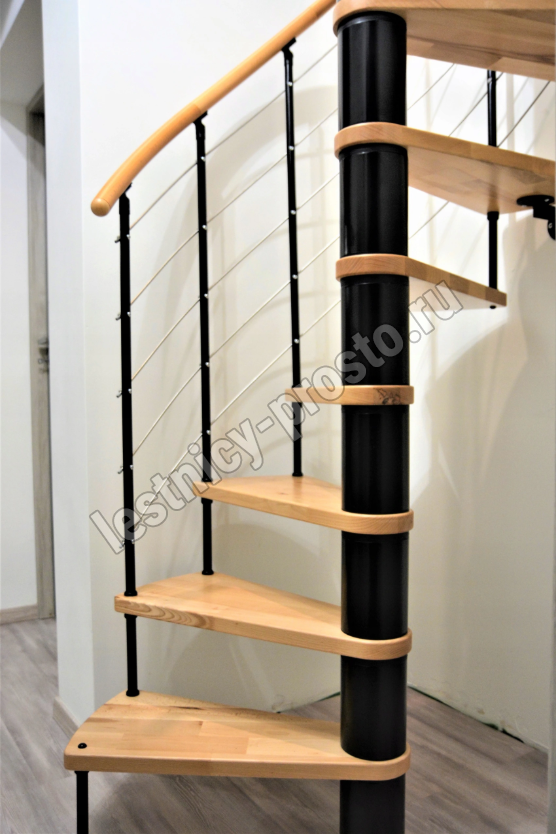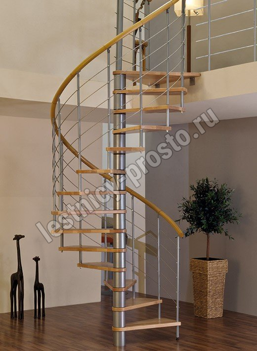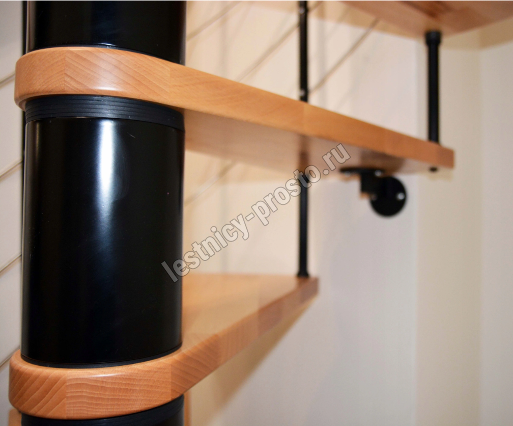 Благодаря возможности регулировать высоту шага с помощью пластиковых вставок (входят в базовый комплект), высоту лестницы можно варьировать в пределах от 2860 до 3090 мм. Кроме того, купив дополнительную секцию для этой лестницы, можно поднять высоту до 3320 мм. Ступени выполнены из сращенного дуба, покрыты износостойким твёрдым бесцветным лаком. Каркас серебристого цвета. Под заказ возможно изготовление лестницы другой расцветки.