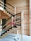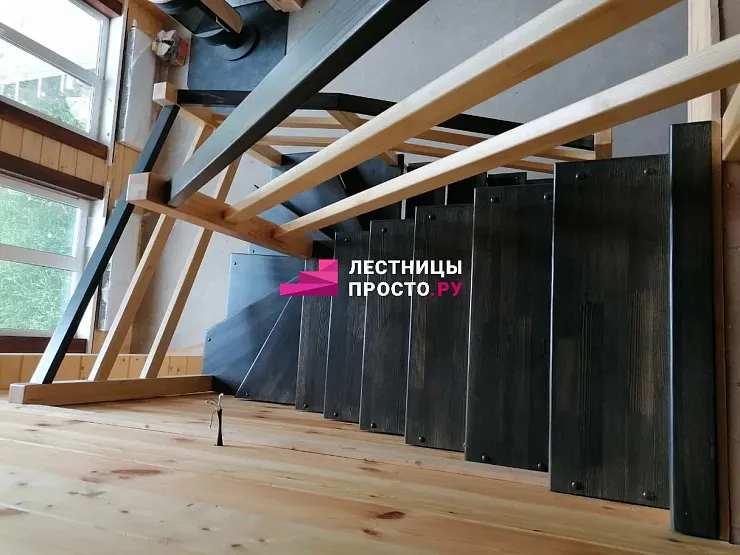 Деревянная лестница выполнена на заказ из сосны паркетной склейки.